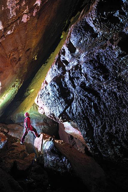 Mai departe e o feerie, nebunie de scurgeri parietale, macaroane calcitice, „canistre” de calcar negru, lucios, șlefuite de ape și săli enorme ce-ţi emoţionează ecoul.