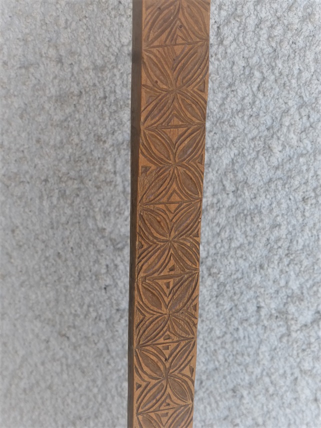 La furca cu talpă și lemnul rotund, observăm o împărțire în douăsprezece câmpuri decorative, egale ca întindere, despărțite între ele printr-o linie frântă (zigzag). Primele trei câmpuri au un decor format din linii paralele verticale, iar celelalte nouă, din linii frânte dispuse vertical, separate prin linii drepte.