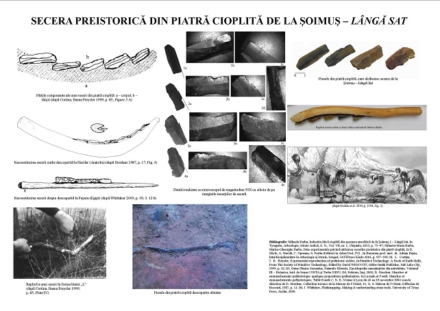 <<Când vorbim despre sedentarizarea umană în preistorie, amintim, printre altele, şi cultivarea şi recoltarea plantelor, aducând în discuţie, pe lângă săpăligi şi plantatoare, secerile. Acestea au fost confecţionate, la început, în epoca neolitică, din piatră cioplită, fiind vorba, mai exact, despre niște piese tăioase de dimensiuni mici, care, erau inserate într-un suport (din os, corn sau lemn).