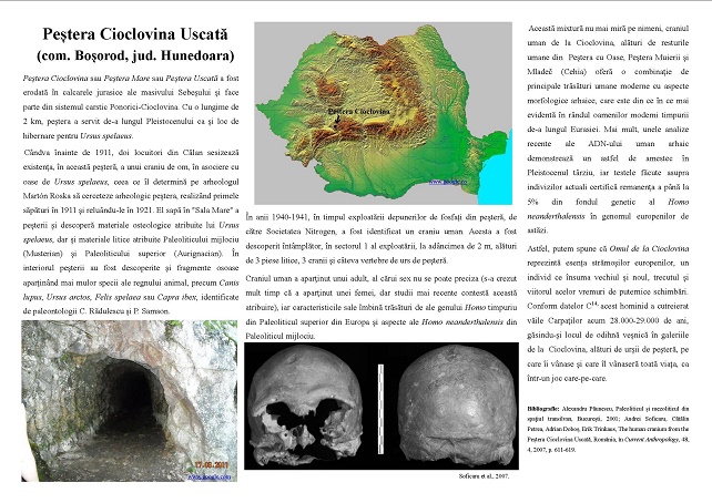 Muzeul Civilizaţiei Dacice şi Romane din Deva continuă prezentarea monumentelor de pe teritoriul județului Hunedoara, în contextul proiectului on-line, Un monument pe săptămână, derulat în ziua de miercuri a fiecărei săptămâni. Astăzi, dorim să vă atragem atenția, cu un altfel de monument, este vorba despre Peștera Cioclovina Uscată, care face parte din Complexul carstic Ponorici – Cioclovina, situat în comuna Boșorod.