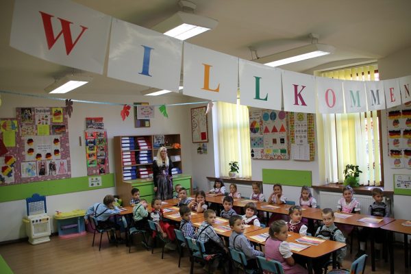 Au doar cinci ani şi, sub îndrumarea educatoarei Mirela Blaj, au deprins binişor limba germană. Sunt în stare să se înţeleagă şi să dialogheze în această limbă. „Wie heißt du?” întreabă profesoara şi fetiţa răspunde mândră: „Ich heiße Claudia!”
