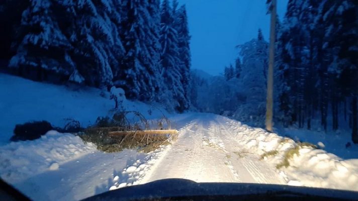 Încărcați sub greutatea zăpezii, mai mulți copaci au căzut și au rupt firele de alimentare cu energie electrică.
