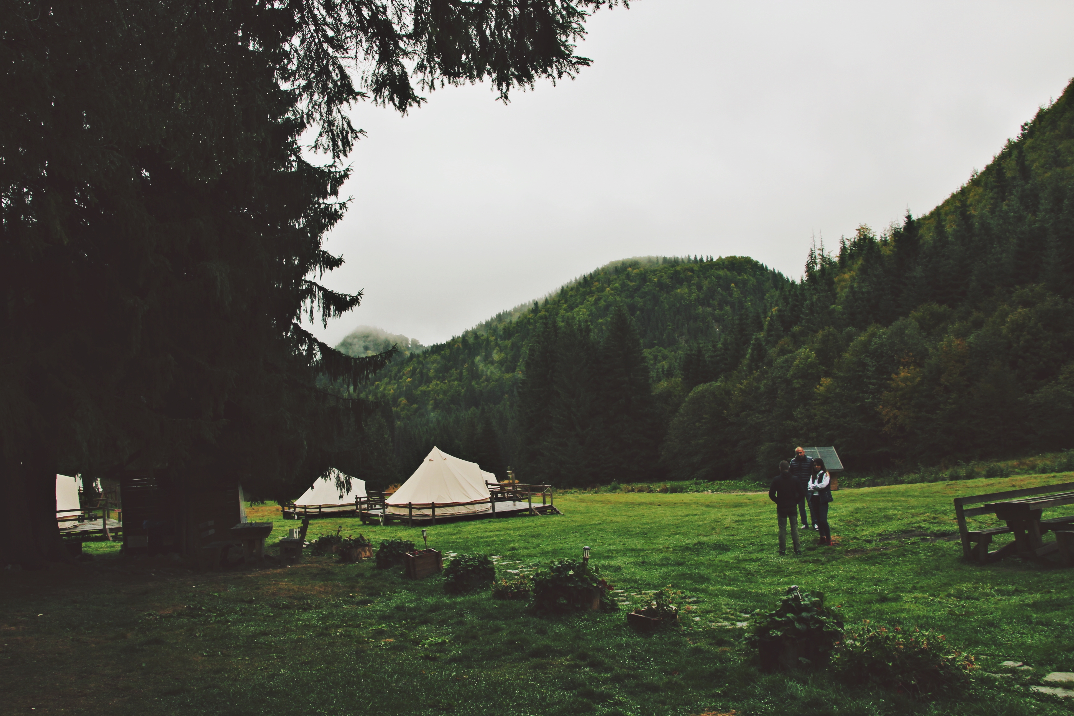 Braţele cetinelor de brad cuprind poiana mare dintre munţi. Un covor mărunt şi verde aşterne iarba până în prispa pădurii luminată de culorile calde ale începutului de toamnă. Ici şi colo, corturi de culoarea vaniliei îşi iţesc conurile asemenea vârfurilor din masiv. Cât cuprinzi cu simţurile e un rai unde glasurile înaripatelor se adaugă vocilor încântate ale oamenilor care descoperă cu uimire campingul de la Valea Iarului.