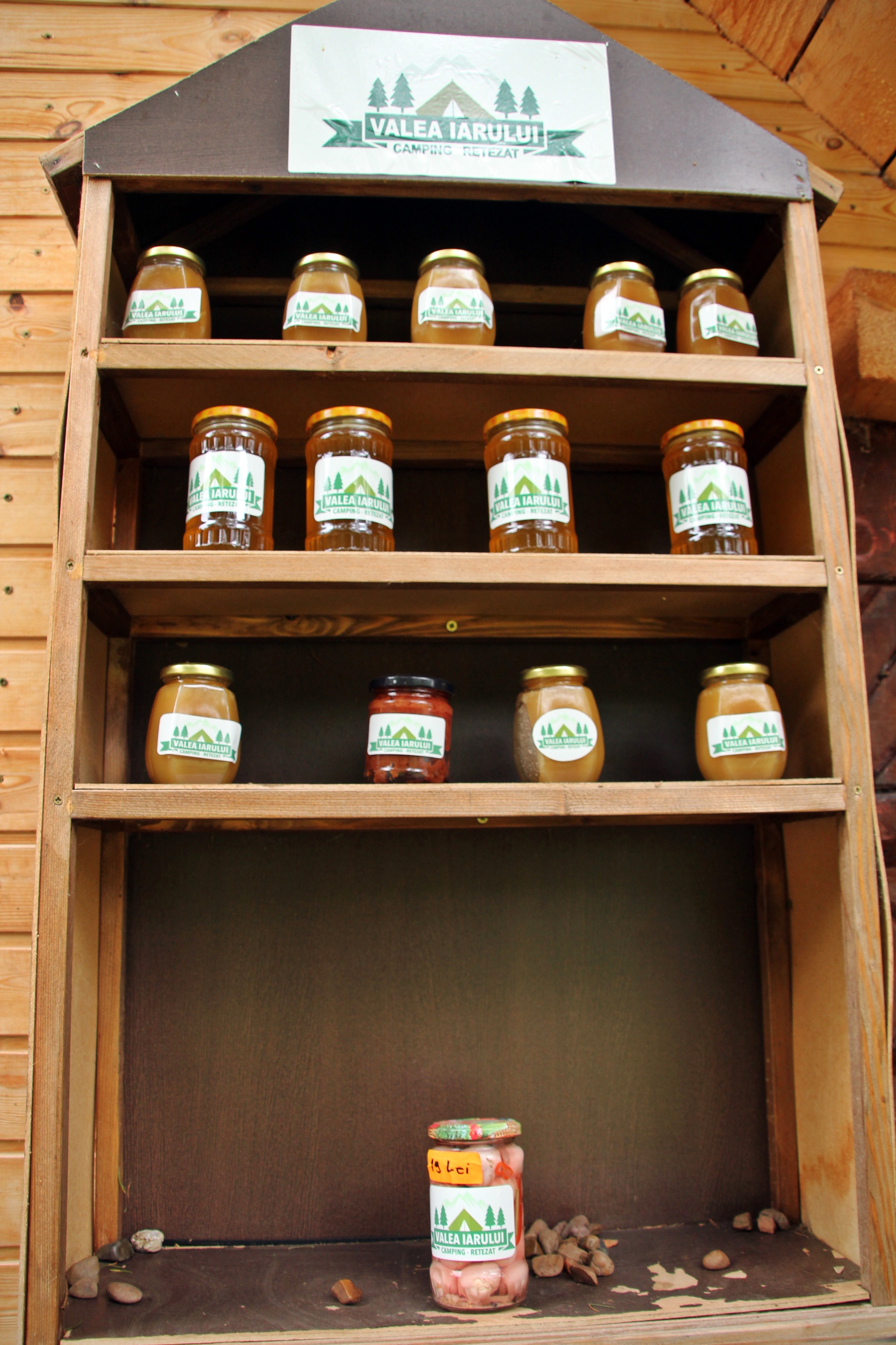 Recepţia are şi un „bar în tihnă” unde, pe lângă băuturi, cafea şi ceaiuri, îţi poţi cumpăra produse autohtone. Sunt diverse sortimente de miere care sunt căutate, dar şi ouă de prepeliţă murate. Locul oferă condiţii excelente, dar are şi cerinţe de la vizitatori care sunt rugaţi să se poarte civilizat, să nu supere natura, vecinii, căţeluşii şi chiar să … nu mănânce seminţe pe terasă! E uşor de bănuit de ce şi efectul se vede – nu e nimic deranjant aruncat în această poiană.