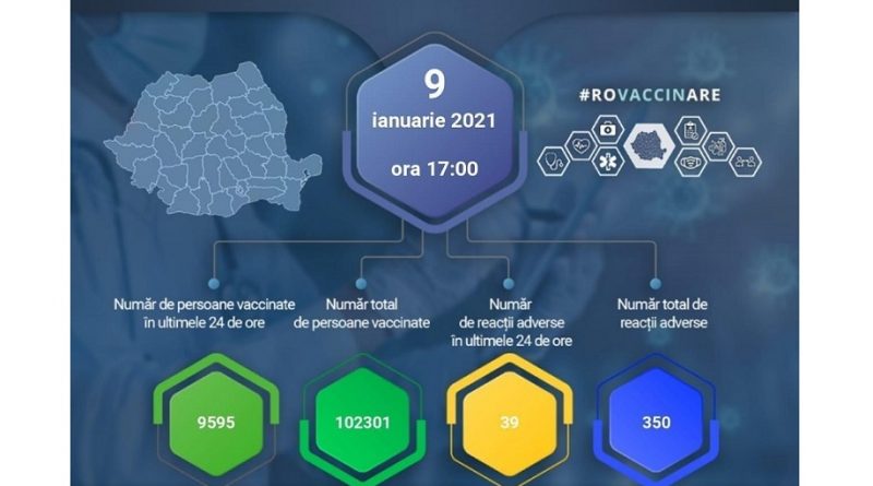 Numărul persoanelor vaccinate anti-COVID-19 a trecut de 100.000, 9595 de persoane fiind vaccinate în ultimele 24 de ore, anunţă sâmbătă Comitetul Naţional de Coordonare a Activităţilor privind Vaccinarea împotriva COVID-19 (CNCAV) care precizează că au fost înregistrate 39 de reacţii adverse ”comune şi minore”, din care 11 locale şi 28 generale.
