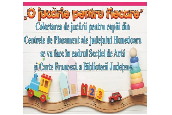 În fiecare an, în perioada premergătoare Zilei Internaționale a Copilului, 1 iunie, Biblioteca Județeană „Ovid Densusianu” Hunedoara-Deva se mobilizează în acțiunea O jucărie pentru fiecare, inițiată în urmă cu câțiva ani. Cu acest prilej, pornim o amplă campanie de sensibilizare și atragere a membrilor comunității, a locuitorilor din județul Hunedoara, pentru a le dărui jucării copiilor din centrele de plasament ale județului.