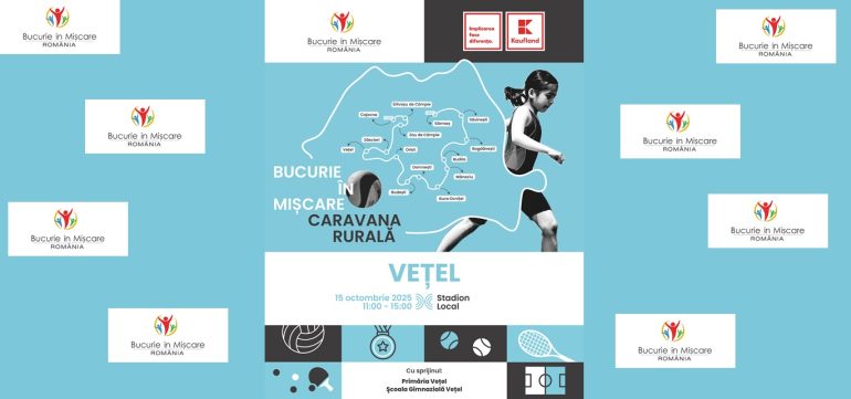 Programul Bucurie în Mișcare, cel mai amplu program de promovare a sportului de masă din România ajunge în Vețel în data de 15 octombrie 2025. Cei mici și cei mari deopotrivă sunt așteptați la mișcare între orele 11:00 – 15:00 pe Stadionul Local.