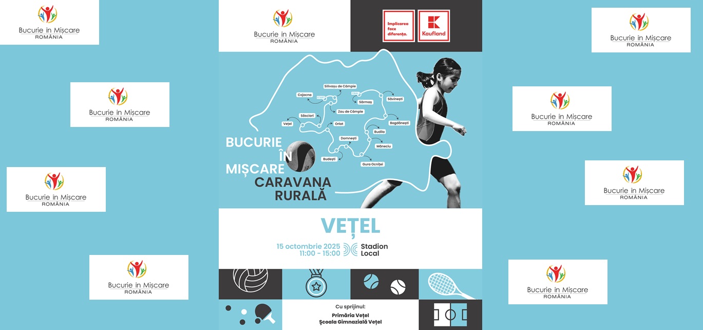 Programul Bucurie în Mișcare, cel mai amplu program de promovare a sportului de masă din România ajunge în Vețel în data de 15 octombrie 2025. Cei mici și cei mari deopotrivă sunt așteptați la mișcare între orele 11:00 – 15:00 pe Stadionul Local.