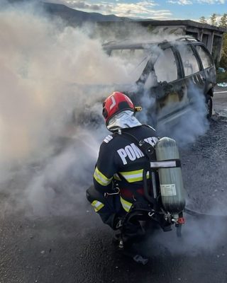 La sosirea echipajului de stingere, autovehiculul se afla parcat în afara părții carosabile. Incendiul se manifesta puternic în partea din față a autovehiculului, în zona motorului, dar ardeau și alte părți ale autoturismului. Ocupanții autovehiculului, conducătorul auto și un pasager, se aflau în exterior, în siguranță, neavând nevoie de asistență medicală”, precizează ISU Hunedoara