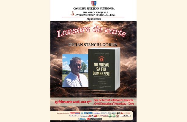Biblioteca Județeană „Ovid Densusianu” Hunedoara – Deva, cu sprijinul Consiliului Județean Hunedoara, organizează în ziua de 23 februarie 2026, ora 1700, la Sala de Lectură, un eveniment editorial la care îi invită pe iubitorii de lectură. Va fi lansat volumul semnat de Lucian Stanciu-Gorun, intitulat „Nu vreau să fiu Dumnezeu!”, apărut la Editura Karina din Deva în anul 2025.