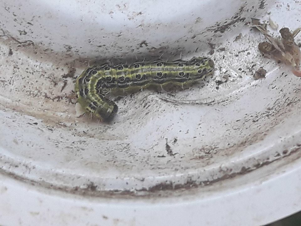 Larvele sunt verzui, cu negi negricioși pe corp, păroși, iar lungimea corpului depășeşte 4 cm.
