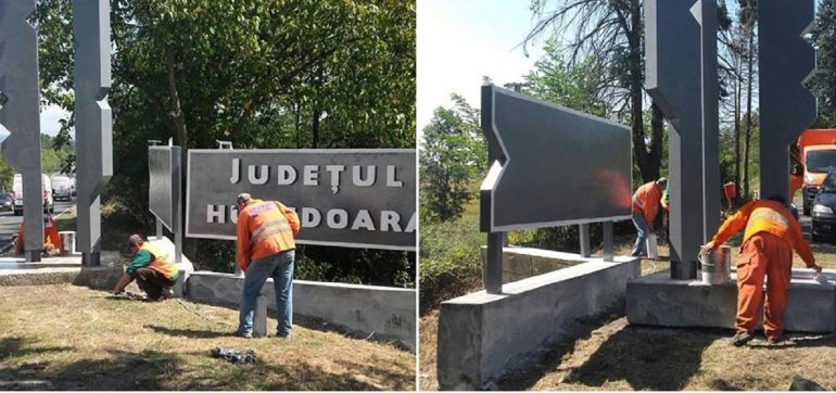 Obeliscul de la intrarea în județul Hunedoara, la Coșevița, pe DN 68A, a primit o înfățișare nouă, prin grija SDN Deva.