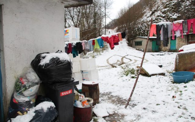 Două anexe erau folosite ca depozite: unul pentru câteva braţe de lemne, altul pentru rufe şi alte obiecte care nu mai încăpeau în odaia micuţă. Când nu se joacă pe afară, Denisa, Gabriela şi Cristina se înghesuie într-un pat lipit de pereţii reci şi scorojiţi. Scriu aplecate deasupra unui scaun de lemn. Par să nu aibă treabă că viaţa le este amară: râd, se îmbrăţişează şi îţi povestesc despre dorinţele lor pentru Moş Crăciun: vor cărţi şi să poată merge la şcoală.