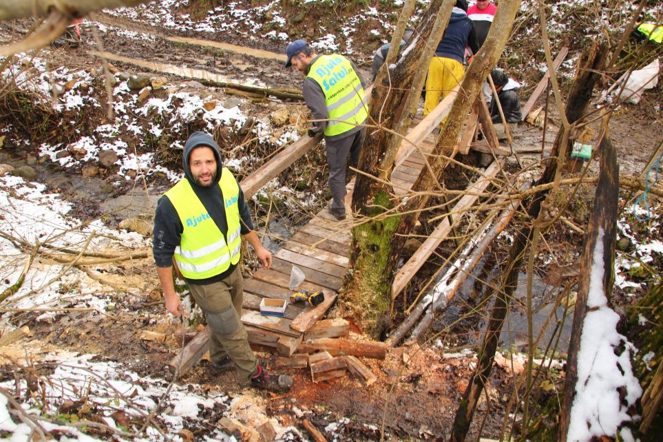 Ei sunt doar câţiva dintre voluntarii care fac locul să freamăte de zgomote, dar şi voie bună. Până şi apa trebuie adusă cu găleţile de la vale. Ofensiva continuă cât e ziulica de lungă.