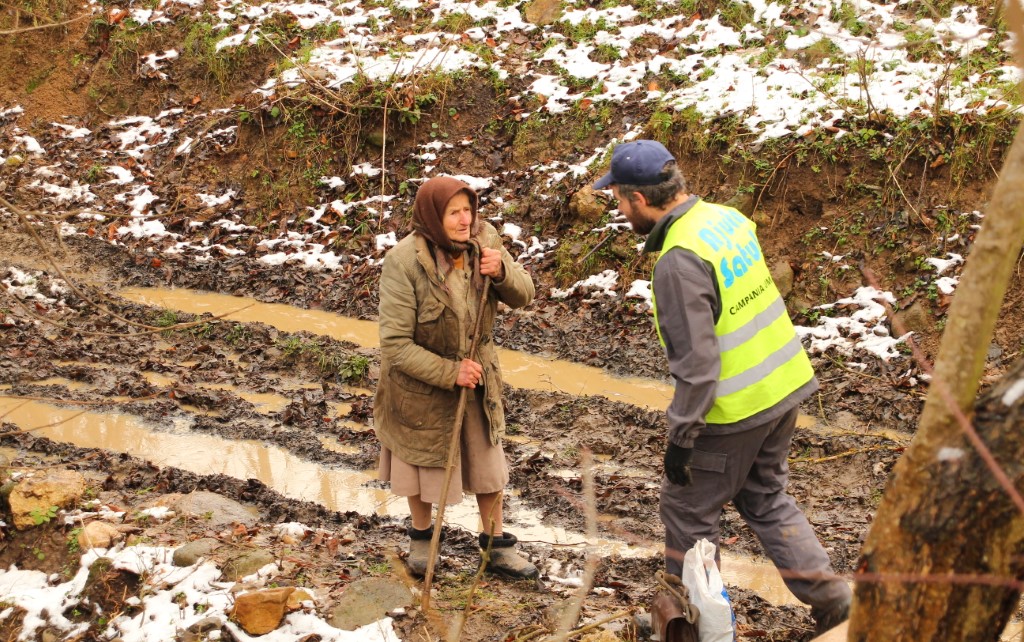 În Orăştie, alţi voluntari muncesc la casa unei familii rămase fără adăpost după un incendiu. În alt cătun din zonă, doi bunici, rămaşi singuri în casele lor, primesc de la voluntari sprijin de seamă. Tanti Fica, la 86 de ani, mai că ar uita de toate lipsurile, doar să mai rămâi un pic la poveşti, să îi alungi pustiul din casă şi suflet.