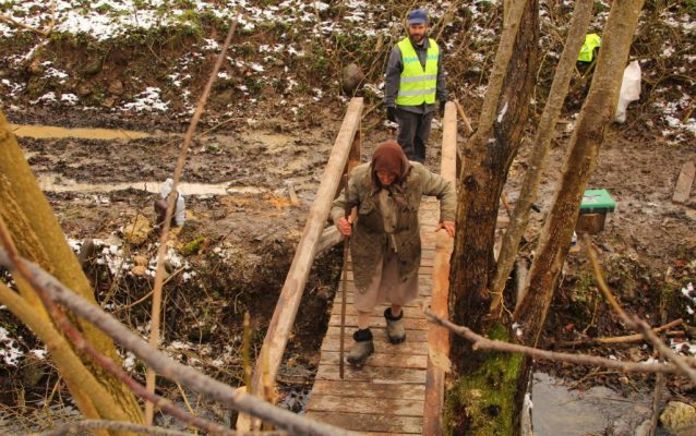 Alţi oameni din zonă, le urmează exemplul: „Dacă noi avem, vrem să dăm şi altora”, zice Cornel Stanca. La ultima casă din cătun, Moş Costel de-abia mai umblă cu un picior bolnav. Are doar un amărât de ajutor social. După ploi, apa i-a luat podul şi şi-a încropit o punte din două lemnuţe pe care ţi-e teamă să treci.