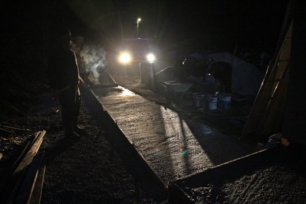 După aproape două săptămâni, s-a strigat din nou mobilizarea şi alte zeci de voluntari au ajuns la Ardeu. Sunt o mulţime de lucruri de făcut inclusiv în curte pentru că Ghiţă şi-a pus în gând să scape copilele de noroaie, să le facă o alee betonată de la casă la poartă, să toarne pietriş, să ridice o latrină, să facă o terasă… O echipă de voluntari vine cu tot cu utilaje tocmai din Cugir. Se munceşte la greu – deşi unii sunt aici pentru prima dată, lucrează ca o echipă perfect coordonată. Se lucrează repede, dar mai ales, bine. Totul se îndreaptă până iese perfect.