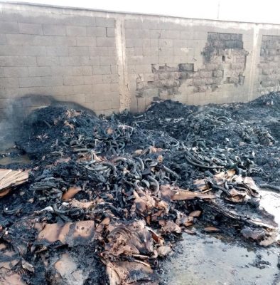 În urma incendiului au ars cauciucuri și alte deșeuri pe o suprafață de circa 200 de metri pătrați.