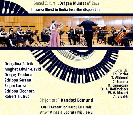 Primăria Municipiului Deva și Centrul Cultural „Drăgan Muntean” vă invită în data de 3 iunie 2022, de la ora 12:30, în Sala Mare a Centrului Cultural „Drăgan Muntean” din Deva, la un Concert Cameral cu Orchestra de Cameră Maggiore din Timișoara.