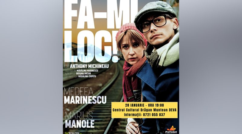 Read MoreCentrul Cultural „Drăgan Muntean” din Deva găzduiește miercuri, 28 ianuarie 2026, de la ora 19:00, spectacolul de teatru „Fă-mi loc!”,