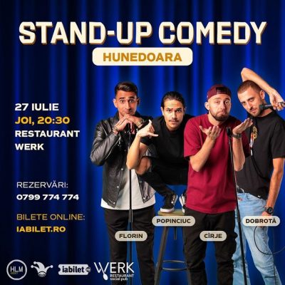 Posibil să îi știi de la Roast Battle-uri, ori de la Stand-up Revolution sau de la iUmor, sau poate acum îi vezi pentru prima dată. Adună-ți gașca și bucură-te de un stand-up comedy, la Restaurant Werk din Hunedoara, Joi 27 iulie, ora 20:30.