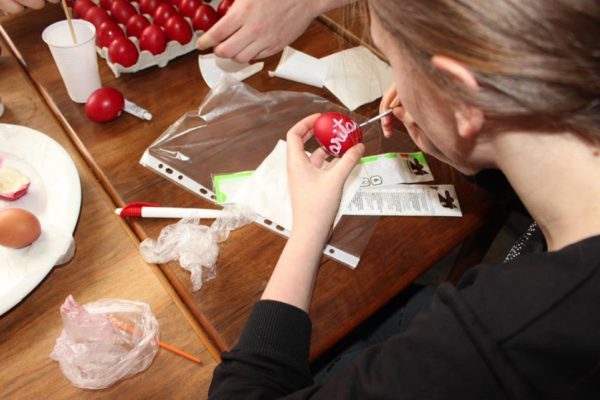 Mai mult, volutarii de la Caritas au început să vopsească ouăle. Acestea vor fi puse alături de alimente în pachetele ce vor fi oferite vârstnicilor.