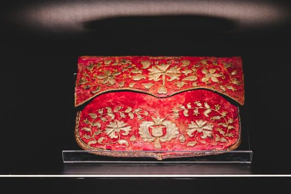 „ … vă prezentăm o piesă fascinantă, descoperită întâmplător, la gunoi, în Clujul sfârșitului de secol XIX. Obiectul, confecționat din piele și postav vișiniu, impresionează prin broderia rafinată și decorul floral personalizat, detalii care vorbesc despre gustul și statutul proprietarului (…) Oare ghiciți ce este și la ce era folosit acest obiect?”