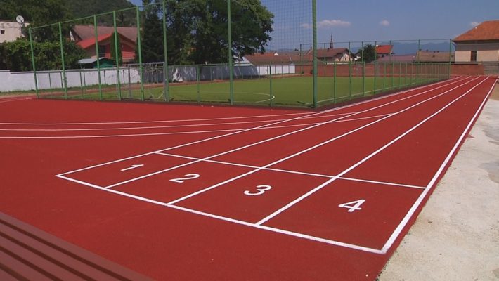 Pista are o suprafață totală de 860 metri pătrați, acoperită cu tartar de culoare roșie și marcaj de culoare albă, cu o grosime de 2 cm, culoare de alergare, o bandă de alergare viteză și o groapă de nisip pentru saritura în lungime, având o suprafață de 18 metri pătrați.