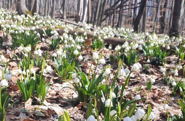 Plăpânzii ghiocei se încălzesc în Poiana Vârtoapelor