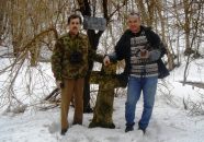 4. Luna martie 2005. Prof. Dorin Petresc și ing. Olivian Marius Goțiu, lângă Troița din Poiana lui Miștoc