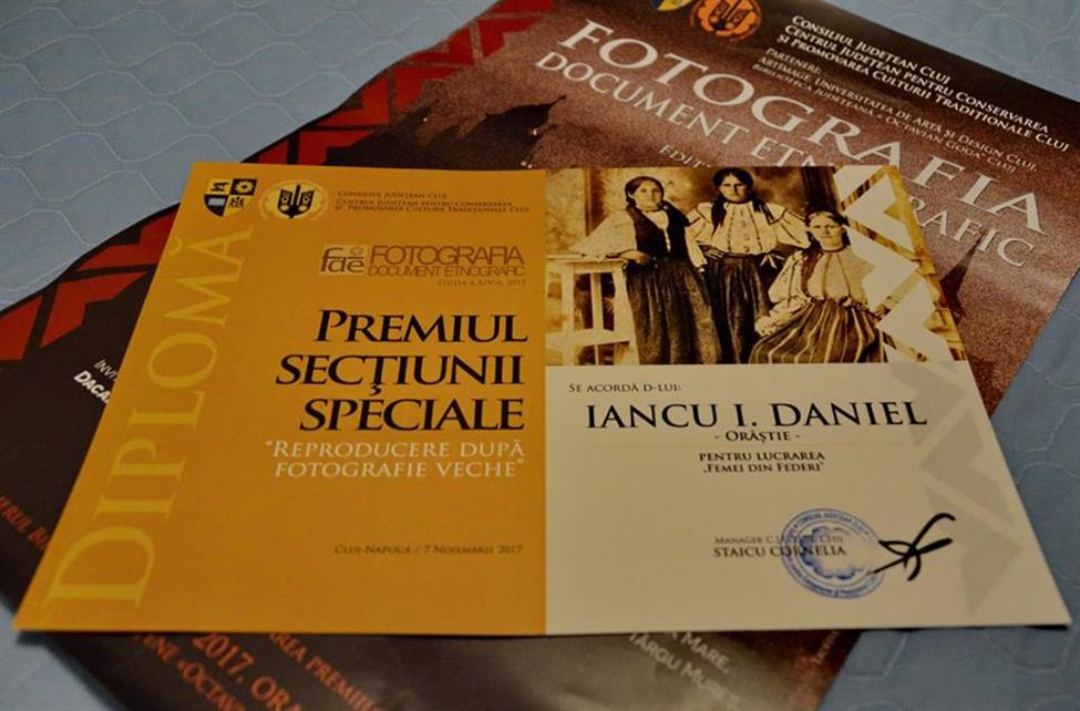 Peste 350 de fotografii au fost trimise din toată ţara pentru ediţia a 14-a a concursului național „Fotografia-Document Etnografic” şi mai bine de 100 de fotografii au fost selectate pentru expoziţie, dar juriul a ales numai 10 fotografii care au primit diverse premii. Printre câştigători se află şi muzeograful Daniel Iancu, care a convins cu reproducerea sa după vechea fotografie găsită în Federi. Iar membrii juriului sunt somităţi în domeniu: prof.univ.dr. Dorel Găină, prof.univ.dr. Karoly Feleki de la Departamentul Foto-Video-Procesare Computerizată din cadrul Universității de Artă și Design Cluj, maestrul fotograf Szabo Tamas și Mircea Albu, președintele ArtImage. „Fotografia descoperită în urmă cu câteva săptămâni, în zona Haţegului reprezintă trei femei îmbrăcate în costum popular şi este o fotografie care datează de la sfârşitul secolului al XIX-lea, dar nu am reuşit să identific clar anul în care a fost realizată. Sunt foarte puţine date despre autor, Krausz Gyula, un fotograf destul de cunoscut din Timişoara, la sfârşitul secolului 19. Una din fotografii chiar e datată 1888. Pentru că avea multe cereri şi-a deschis un atelier de fotografie şi la Deva, pe strada care acum se numeşte „Regina Maria”. Acolo s-au dus cele trei femei să-şi facă fotografii în portul popular. Problema este că nici gazdele mele din Federi nu mai ştiau cine erau cele trei, posibil din familie. Important este că se observă bine portul din zonă din acea vreme”, explică Daniel Iancu.