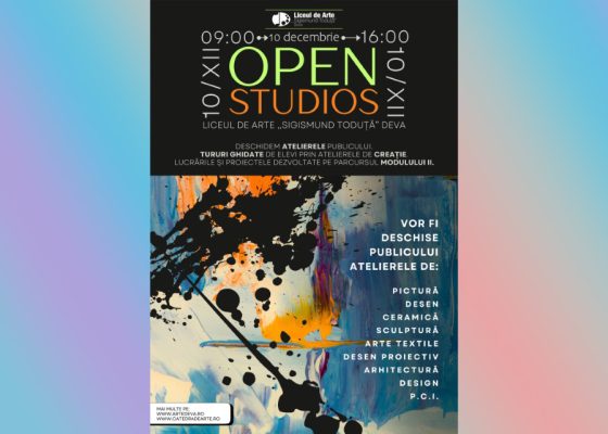 Liceul de Arte „Sigismund Toduță” anunță cu entuziasm debutul Open Studios, un nou proiect educațional dedicat transparenței creative și conexiunii cu publicul larg. Prima ediție va avea loc miercuri, 10 decembrie 2025, la sediul instituției din str. Titu Maiorescu nr. 30, Deva.