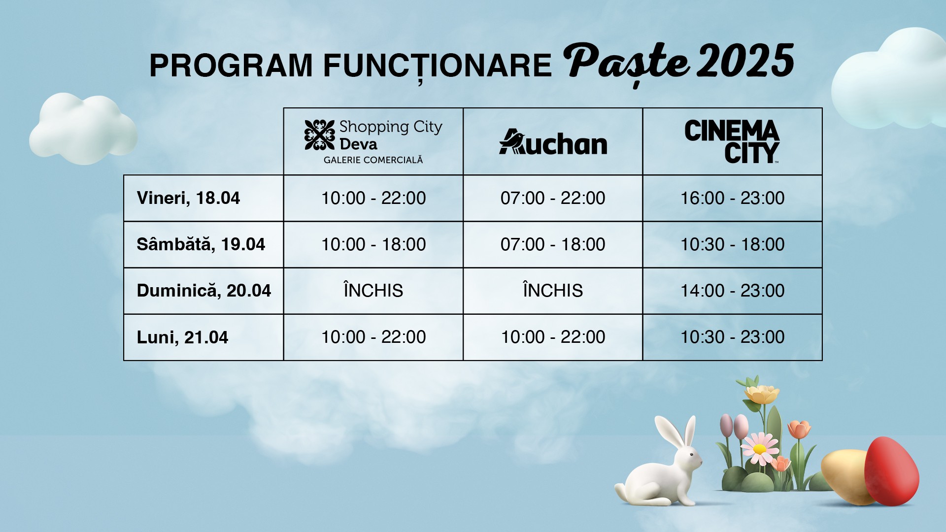 Mai multe informații despre evenimentele Shopping City Deva pot fi găsite pe site-ul oficial al centrului comercial, precum și pe paginile de Facebook și Instagram ale acestuia.