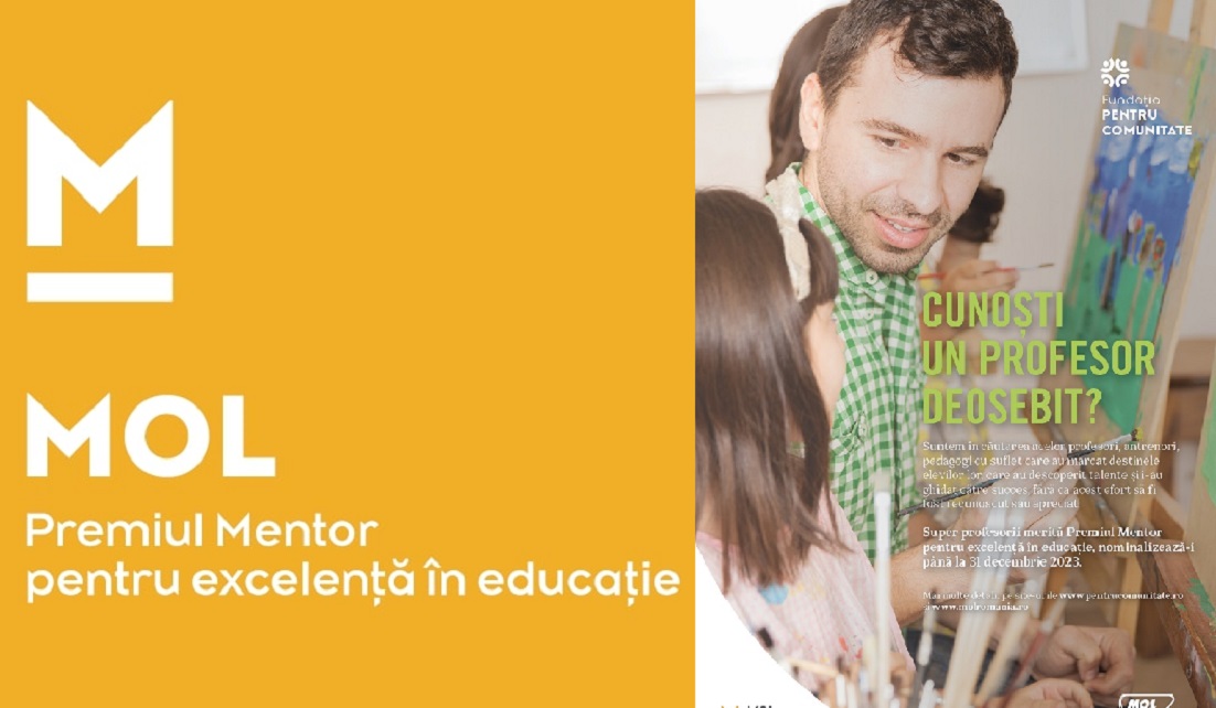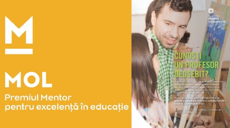 Zece profesori și antrenori vor fi distinși și în acest an cu Premiul Mentor pentru excelență în educație. Premiul constă dintr-un trofeu realizat de artistul sticlar Ioan Nemțoi și o sumă în valoare de 8.000 de lei. Informații despre nominalizare și formularul de înscriere se găsesc pe https://pentrucomunitate.ro/ro/mentor Nominalizările pot fi depuse până la sfârșitul anului, inclusiv în 31 decembrie 2023.