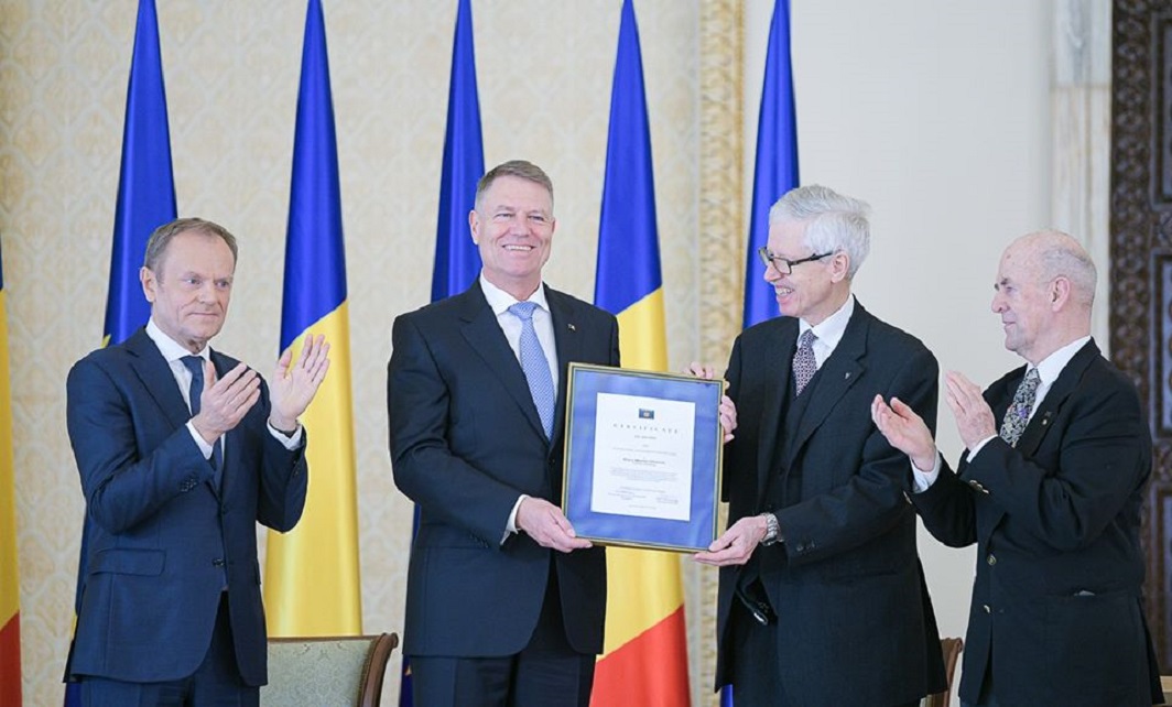 Preşedintele Klaus Iohannis a primit, miercuri, premiul european ”Coudenhove-Kalergi” pentru anul 2020, în cadrul unei ceremonii care avut loc la Palatul Cotroceni.