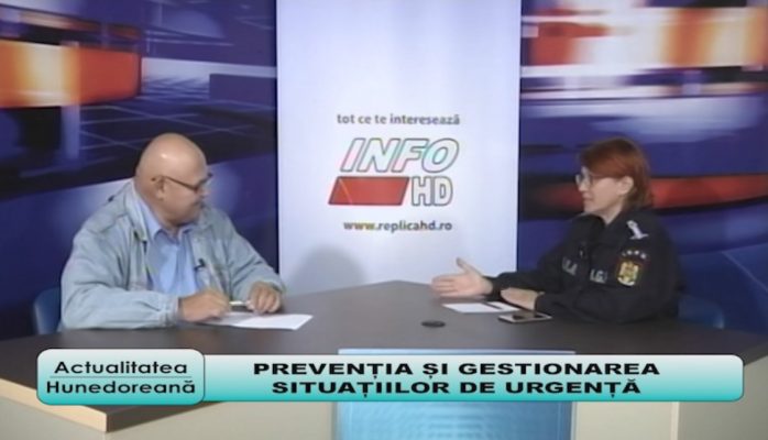 ACTUALITATEA HUNEDOREANĂEMISIUNI INFO HD Prevenția și gestionarea situațiilor de urgență 23 octombrie 2018 Petru Meszaros Invitată: mr. Anemona DODA, purtător de cuvânt ISU Hunedoara