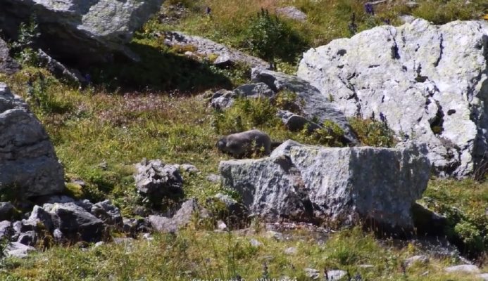 Marmota nu învelea ciocolată în Parcul Național Retezat, ci se juca lângă un râu și stânci. Apariția rozătoarei a fost surprinsă de Claudia Dănău, biolog în cadrul Administrației Parcului Național Retezat.