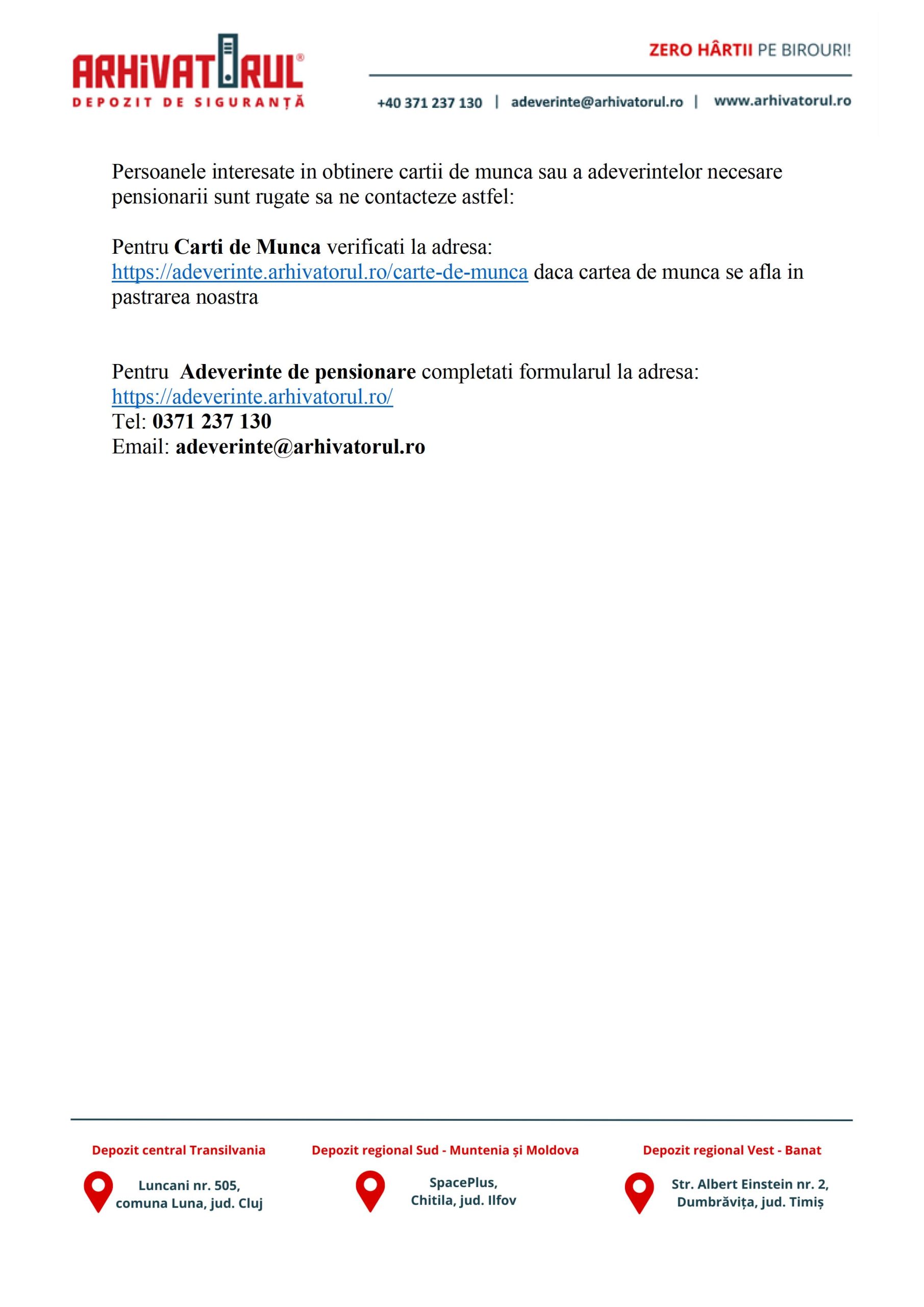 Rugăm persoanele interesate să consulte această listă și, în cazul în care au lucrat la una dintre unitățile menționate, să se adreseze societății care deține arhiva pentru eliberarea documentelor necesare.