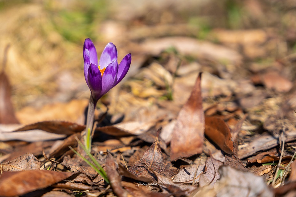 Fotograful hunedorean Gabriel Hotea a surprins imagini splendide cu vestitorii primăverii. Într-una din imagini se vede cum o brândușă își croiește loc prin frunzele uscate pentru a ieși la soare. Brânduşele arată pur şi simplu minunat indiferent de formă, culoare şi soi. Acestea sunt deosebit de atractive când florile lor colorate ţâşnesc prin pătura de zăpadă care încă acoperă pământul. Denumirea ştiinţifică a brânduşei este „crocus”, derivat din grecescul „kroki”, care înseamnă „fir”. Cuvântul se referă la stigmatul în formă de fir al brânduşei. Sezonul de înflorire al acestei mici flori începe la sfârşitul lunii februarie, începutul lunii martie. Floarea de brânduşă, având înălţimea de 8-15 cm, înfloreşte primăvara şi poate fi galbenă, mov-albăstruie sau albă. Ideal pentru aceste plante este solul bogat în humus, aerat şi poros. Dacă este posibil, florile trebuie plasate într-un loc însorit şi cald, dar nici umbra temporară nu împiedică dezvoltarea florii.