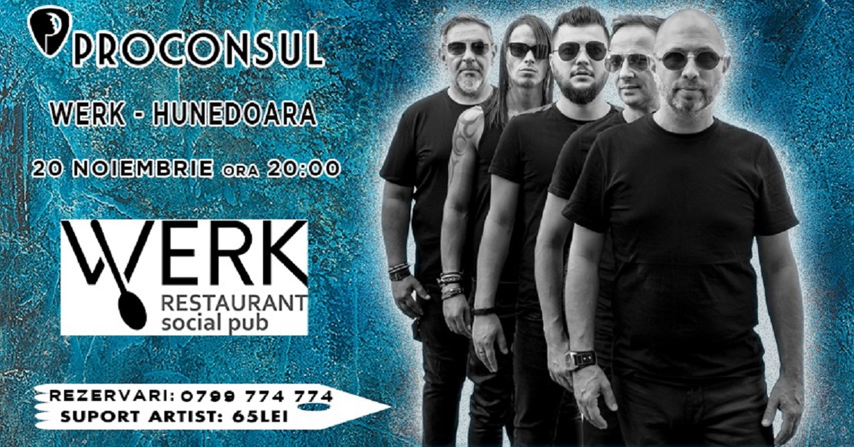 ACTUALITATEȘTIRI INFO HD PROCONSUL SĂRBĂTOREȘTE 23 DE ANI LA HUNEDOARA 16 noiembrie 2022 Petru Meszaros Îndrăgita trupă va concerta la Restaurantul Werk duminică, 20 noiembrie