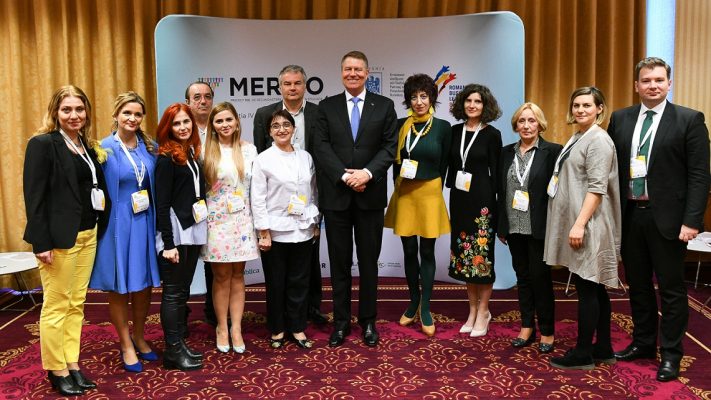 “În anul în care se premiază cea de-a patra generație de profesori «MERITO», ne confruntăm cu provocări severe, care riscă să afecteze însuși fundamentul democratic al României. Multe dintre aceste provocări, care ajung să pună în discuție chiar și parcursul european al țării noastre, au rezultat inclusiv din neglijarea, decenii la rând, a educației românești. (…)Dumneavoastră sunteți acei dascăli care nu ați așteptat reformele venite din Parlament sau de la Minister, ci ați venit cu soluții și proiecte proprii, și ați reușit. Vă felicit pentru această implicare și vă urez să continuați să luptați pentru ca fiecare copil din România să aibă o șansă la un viitor mai bun, fiindcă, în definitiv, pentru asta trăiește dascălul, să educe elevul, tânărul, studentul, în așa fel încât el să aibă succes în viață – în viața de tânăr și, pe urmă, în toată viața de membru responsabil al societății”, a spus președintele României, Klaus Iohannis, în alocuțiunea sa.