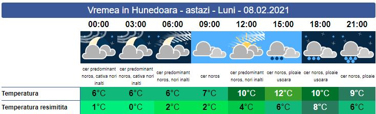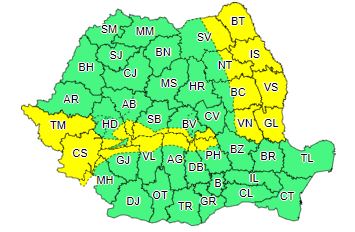 Temperaturile minime se vor înregistra între 6 și 9 grade, iar cele maxime între 10 și 12 grade.