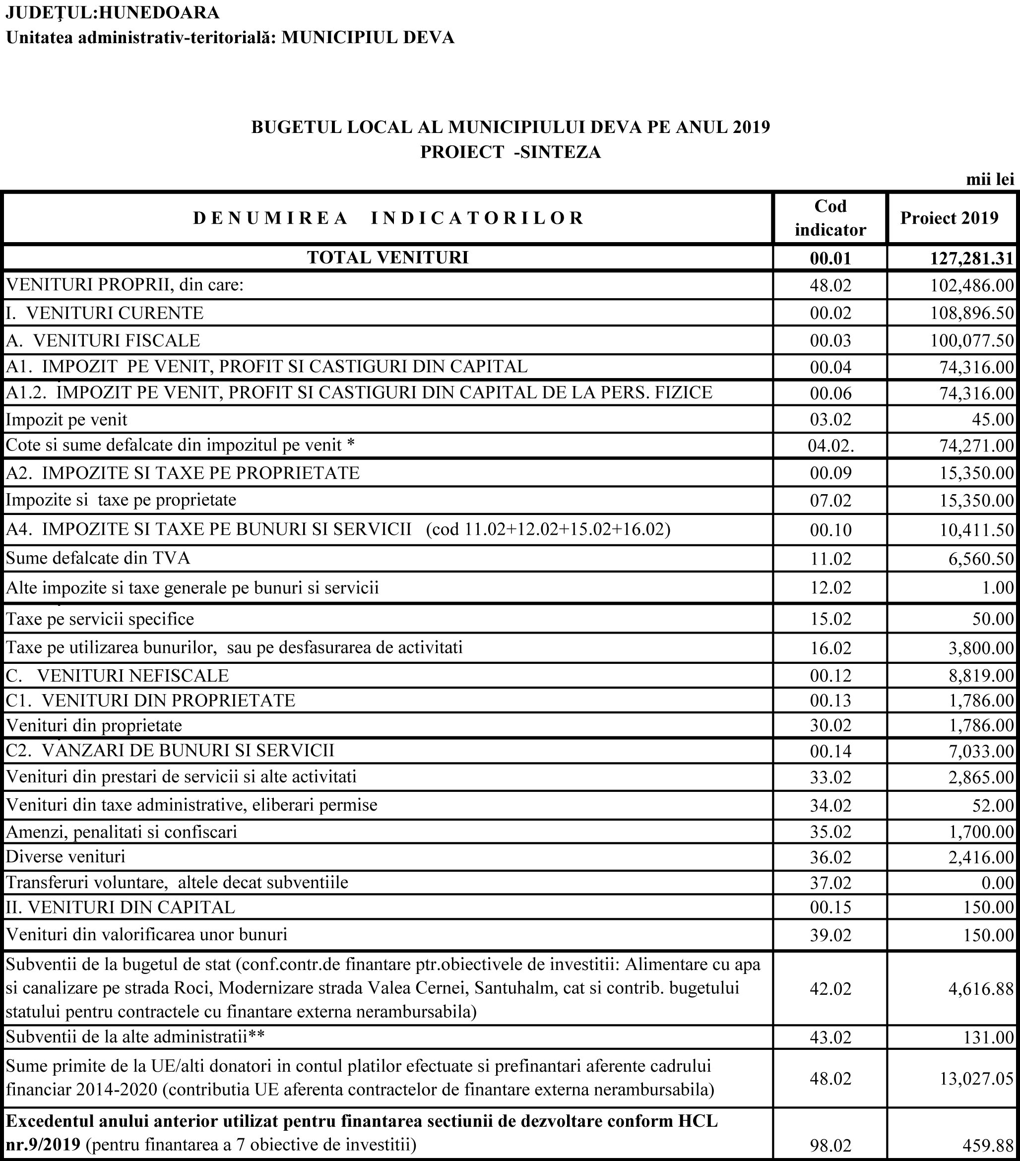 ACTUALITATEADMINISTRAȚIEANUNȚURI Proiect sinteză al Bugetului Local al Municipiului Deva pe anul 2019 2 aprilie 2019 Redacția Replica