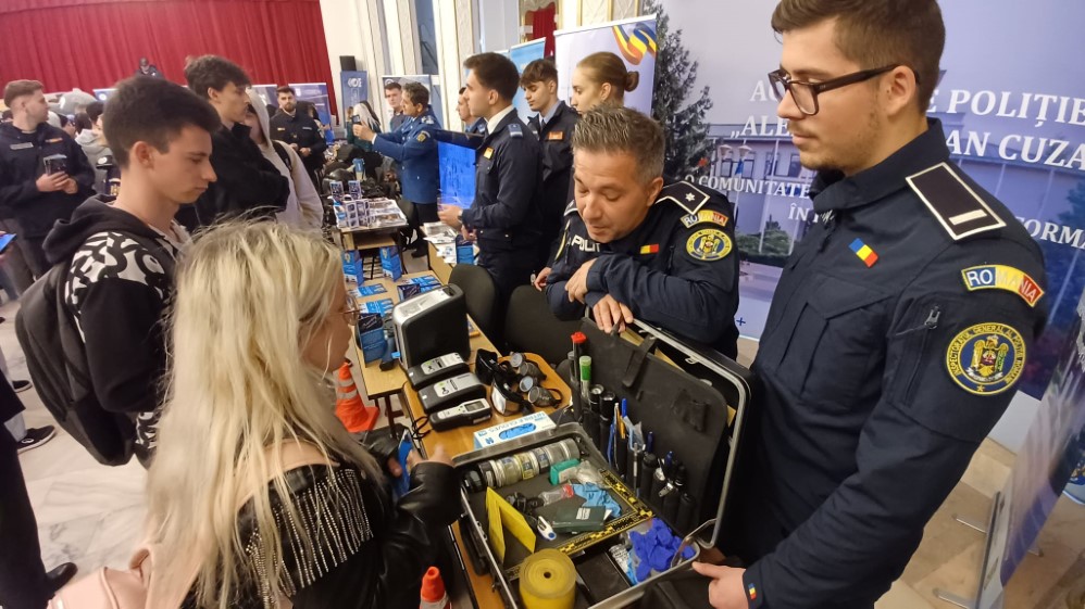 Astăzi, activitățile au avut loc la Centrul Cultural Corvinia, din Hunedoara, unde polițiștii Serviciului Criminalistic și ai Serviciului Rutier au prezentat elevilor tehnica din dotare, mijloacele de intervenție și specificul muncii de poliție. Tinerii au avut ocazia să interacționeze direct cu polițiștii, să adreseze întrebări și să afle detalii despre admitere și cerințele profesiei.