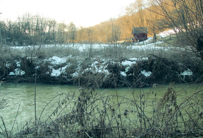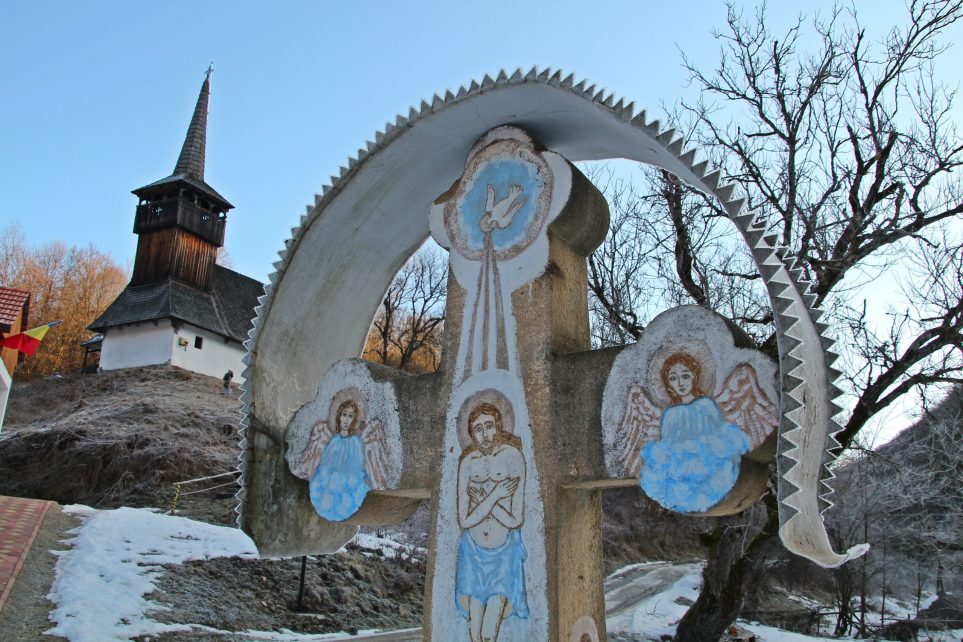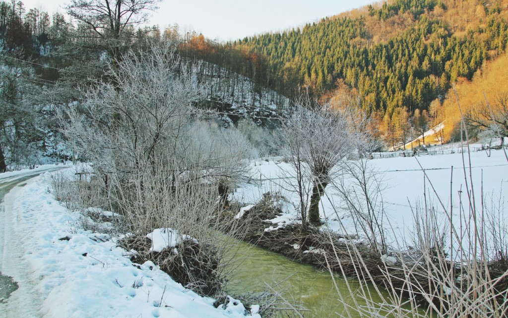 Soarele tresare în milioane de sclipiri de zăpadă, izvorul limpede coboară prins între malurile îngheţate, pădurea picoteşte în haine dalbe până la poalele sătucului din Apuseni.
