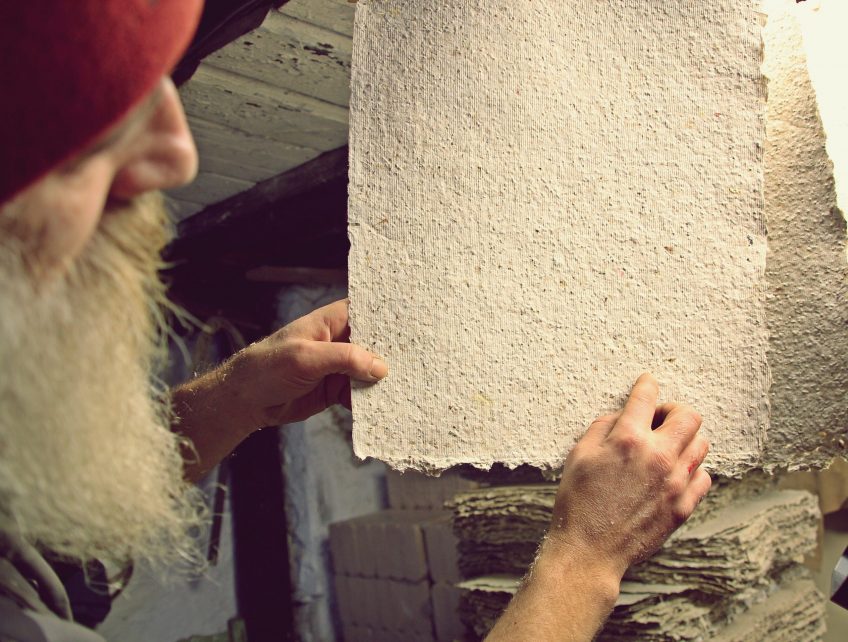 Hârtia sa realizată manual e cu atât mai apreciată cu cât meşterul foloseşte doar hârtie uzată: „Toate deşeurile de hârtie pot fi reciclate, este un mare avantaj al lor. Firele care sunt extrase din trunchiuri rămân în masa hârtiei şi sunt o materie primă, în sine. Pot fi folosite în foarte multe feluri, inclusiv pentru a depozita seminţele care, odată puse în pământ, germinează. Deja am folosit pentru producţia de hârtie plantabilă peste două tone de deşeuri din care vor ieşi milioane de seminţe, iar o parte se vor transforma în aceşti copăcei minunaţi, mestecenii”, povesteşte bărbatul.