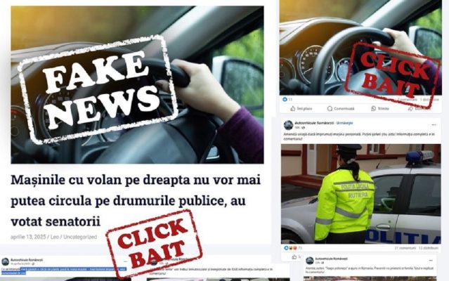 „Atenţie la dezinformare, clickbait şi fake-news! Interesul nostru pentru maşini, modificarea legislaţiei din domeniu şi teama că am putea fi luaţi prin surprindere de noutăţi pe care nu le-am aflat sunt aspecte care nu le puteau scăpa celor care ne exploatează în scopuri negative atenţia şi timpul pe reţelele sociale. (…). În ultima perioadă, ne-au atras atenţia diferite postări şi materiale menite să genereze panică, neîncredere sau chiar revoltă printre deţinătorii de vehicule. Cititorii sunt bombardaţi cu tot felul de informaţii false, extrase din context sau cu ştiri «reşapate» cu rolul de a aduce accesări paginilor şi site-urilor respective”, precizează specialiştii Registrului Auto Român.
