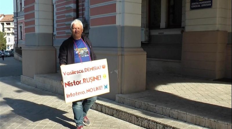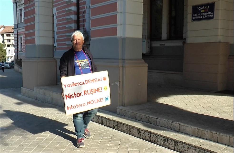 Vladimir Brilinsky îl acuza pe Sorin Vasilescu, vicepreședinte PSD al Consiliului Județean, care va reveni în țară marți, pentru neimplicarea sa în scoaterea sitului arheologic de la Sarmizegetusa Regia din fondul forestier, și îi cerea să demisioneze din funcție. De lunea trecută Brilinsky protestează, zilnic, timp de o oră, în fața Consilului Județean Hunedoara, cu o pancartă pe care sunt transmise cîteva mesaje dure către importanți lideri PSD din județ, respectiv “Vasilescu, demisia; Nistor, rușine; Intotero, no like”. Sorin Vasilescu și deputații PSD de Hunedoara Laurențiu Nistor și Natalia Intotero nu au avut o reacție oficială la acest protest.