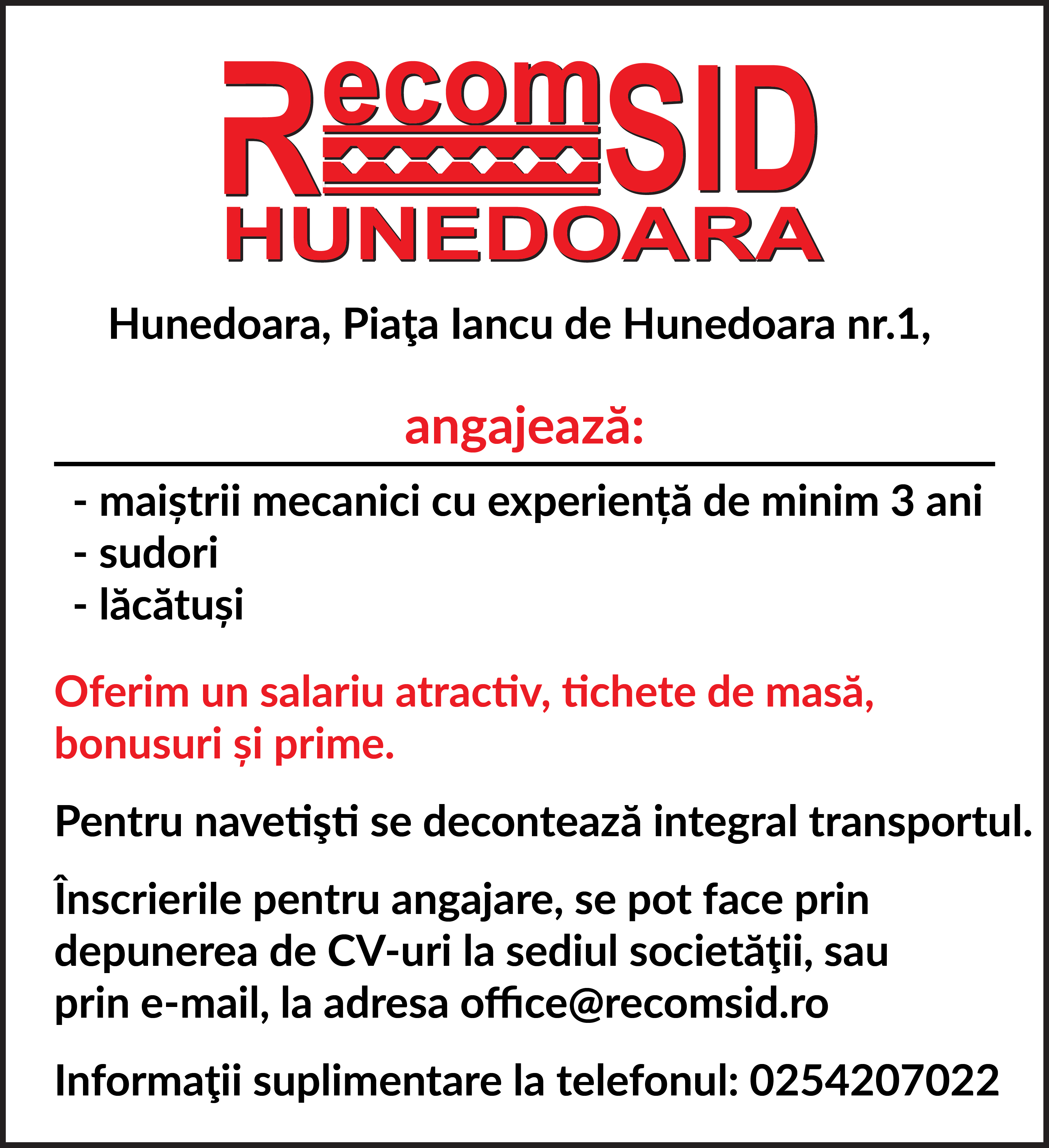 Recom SID ANGAJEAZĂ!