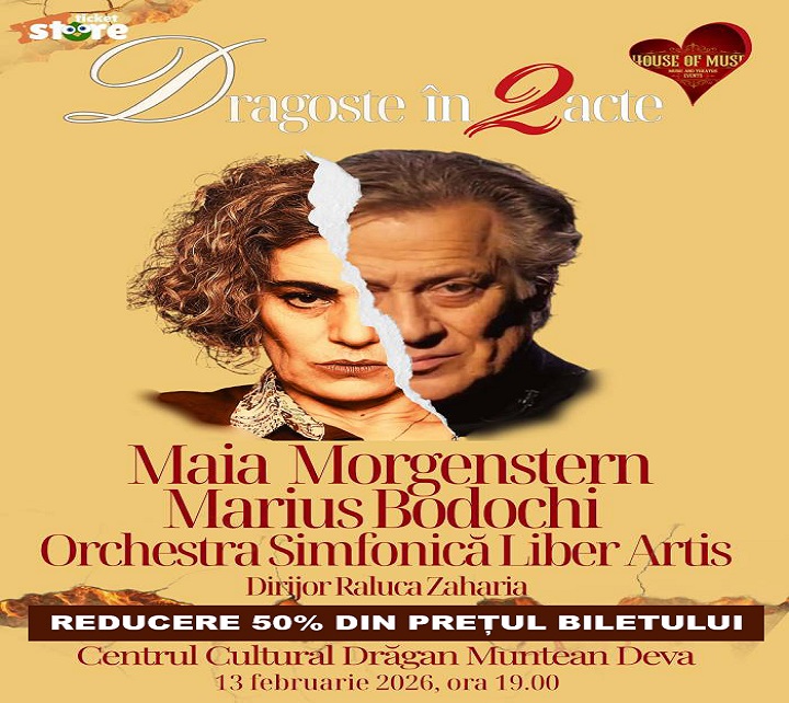 ACTUALITATESTIRI INFO HD 1 REDUCERE SPECIALĂ DE 50% 10 februarie 2026 Petru Meszaros „Dragoste în 2 acte (și un bis)”cu Maia Morgenstern și Marius Bodochi